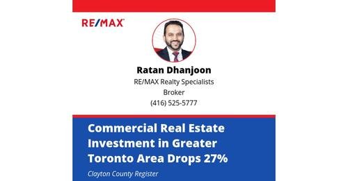 Commercial Real Estate Investment in Greater Toronto Area Drops 27% Contact me to discuss…