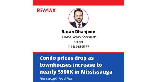 Condo prices drop as townhouses increase to nearly $900K in Mississauga Contact me to…