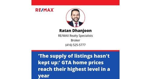 ‘The supply of listings hasn’t kept up:’ GTA home prices reach their highest level…