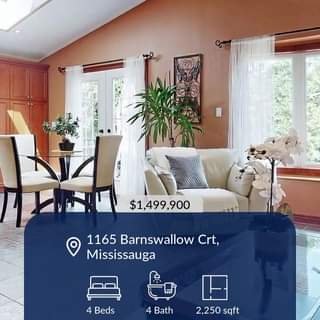 Just Listed: 1165 Barnswallow Crt, Mississauga Call Ratan for all your real estate needs…