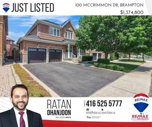 New Listing: 100 McCrimmon Drive, Brampton Ratan Dhanjoon – Broker – RE/MAX Realty Specialists…