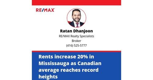 Rents increase 20% in Mississauga as Canadian average reaches record heights Contact me to…